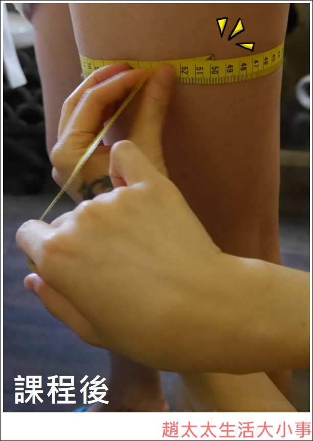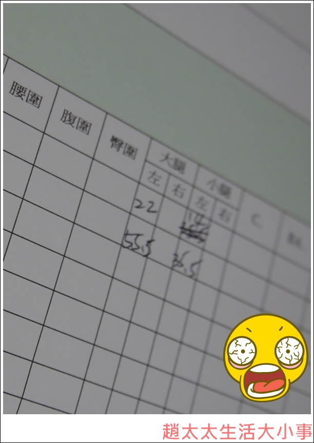 一開始先丈量大腿、小腿的腿圍,美容師說可以比較一下前後數據