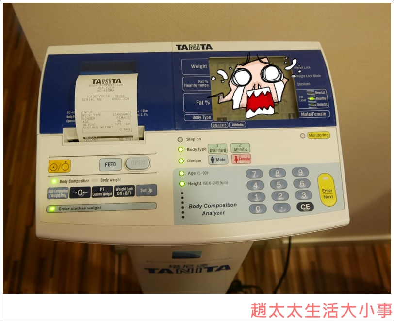 得到一張非常詳細的分析表,雖然體重還是沒有瘦回懷孕前的數字,但是身體年齡仍比我實際年齡小2歲,是唯一值得感到開心的一點
