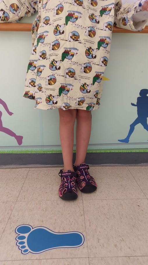 一早05:30設鬧鐘響了,趕緊叫起孩子吃早餐,接下來用餐後就睡著,直到08:00多,才又醒來。星期一早上是醫生在舊院門診的時間,所以沒意外的,下午才會手術吧,我們也知道醫生簡直是行程滿檔的超人,加上經驗豐富,也沒有多問,就一邊讓孩子看Netflix一邊休息,度過了上午時光。還到空橋逛逛,看總統府,拍了孩子的雙腿,這幾年接受矯正後真的是變得非常筆直