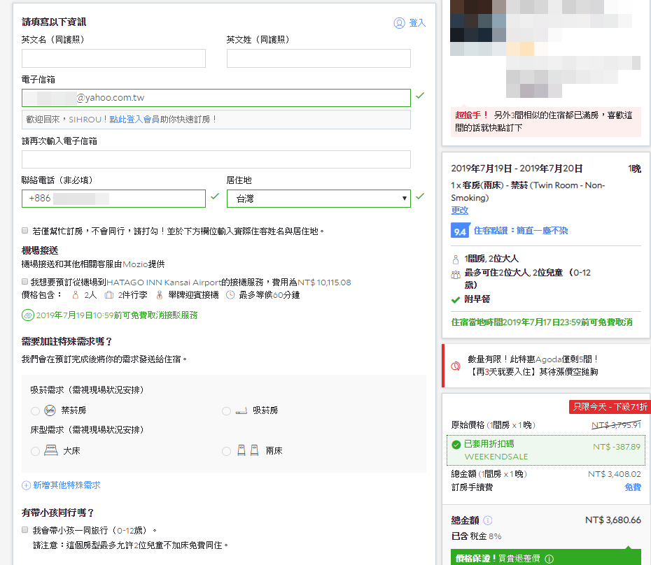 這樣就完成了,簡單又方便,身為Agoda忠實客戶,真的相當推Agoda的服務
