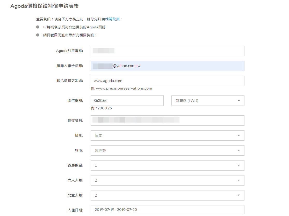 優惠價格補償申請表格,滿簡單的,總之需要先存好網站截圖,然後耐心來填表格