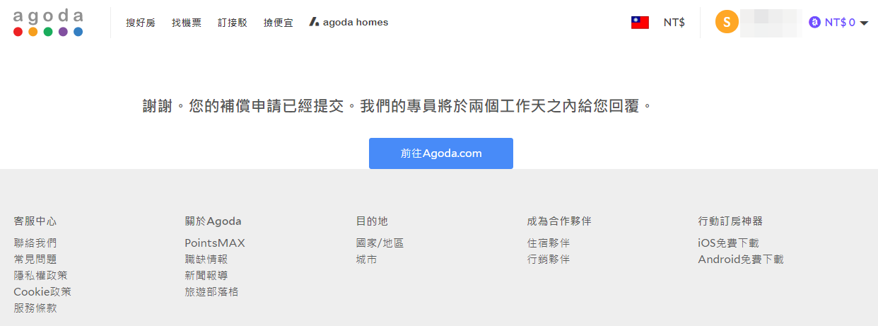 agoda:已經發送給您一封郵件了只需在郵件把截圖附上即可。