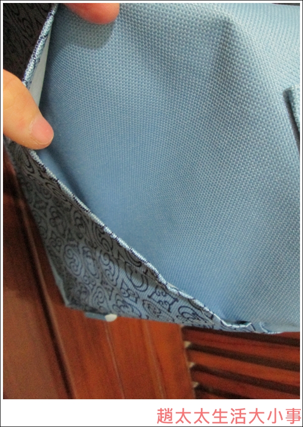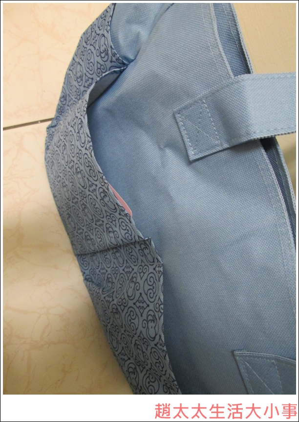 耐用的藍色帆布材質,寵兒媽媽包外圍設計許多大口袋