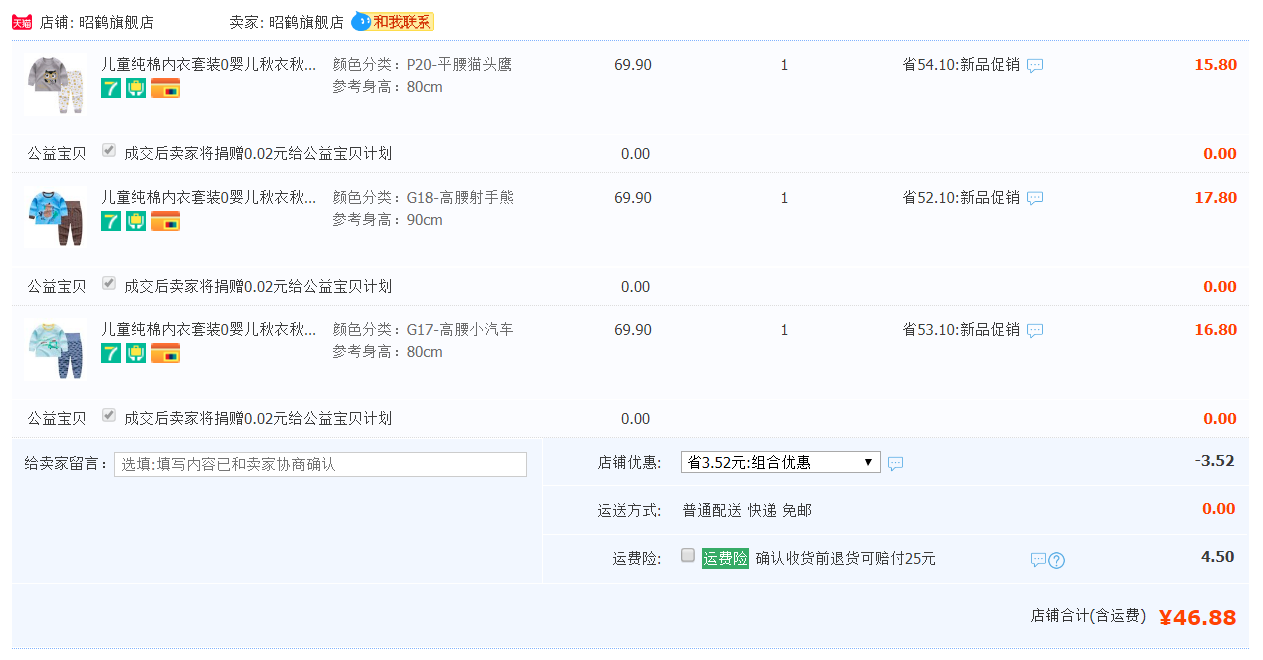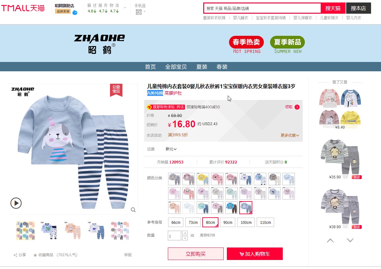 而寶寶服也很超值,昭鶴旗艦店販售的是A類童裝