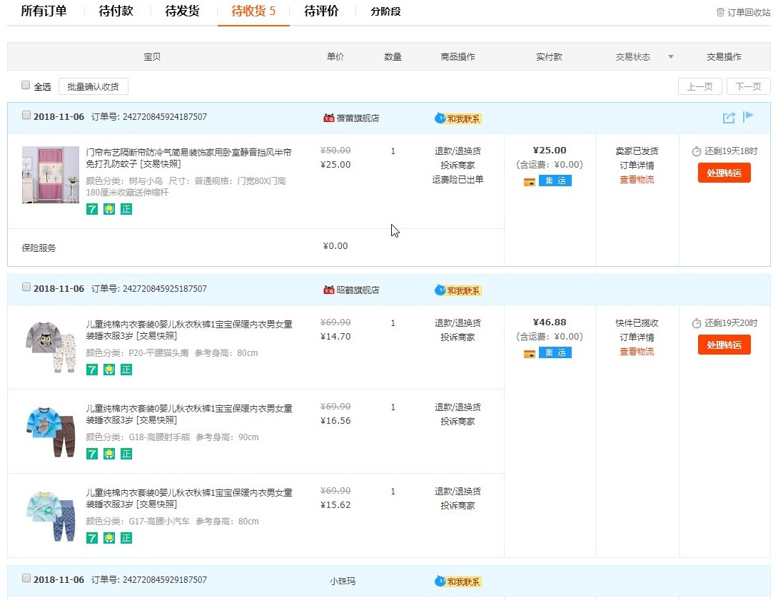 11/6半夜下單,竟然在11/7都出貨了,所以很快地就可以處理轉運了,超開心