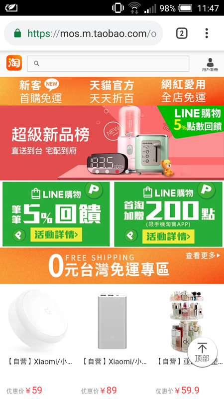 首先,讓我們來看,如何在LINE購物網站這個APP介面找到淘寶呢?