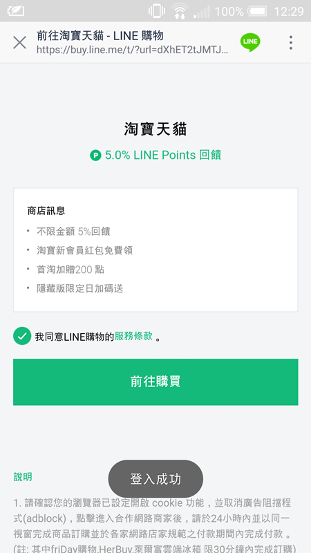 註冊只要手機號碼,非常簡單。透過LINE購物連到天貓網站買東西,最棒的就是每筆訂單再享 LINE Points 回饋,超划算的!