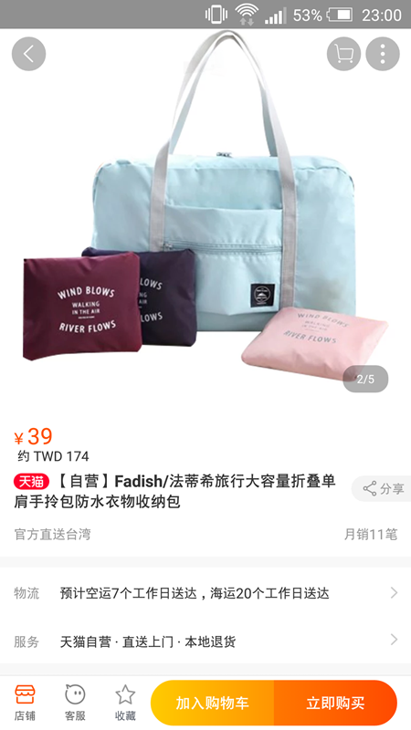 在淘寶天貓全球官方店搜尋 摺疊、旅行,馬上就跑出我要的商品