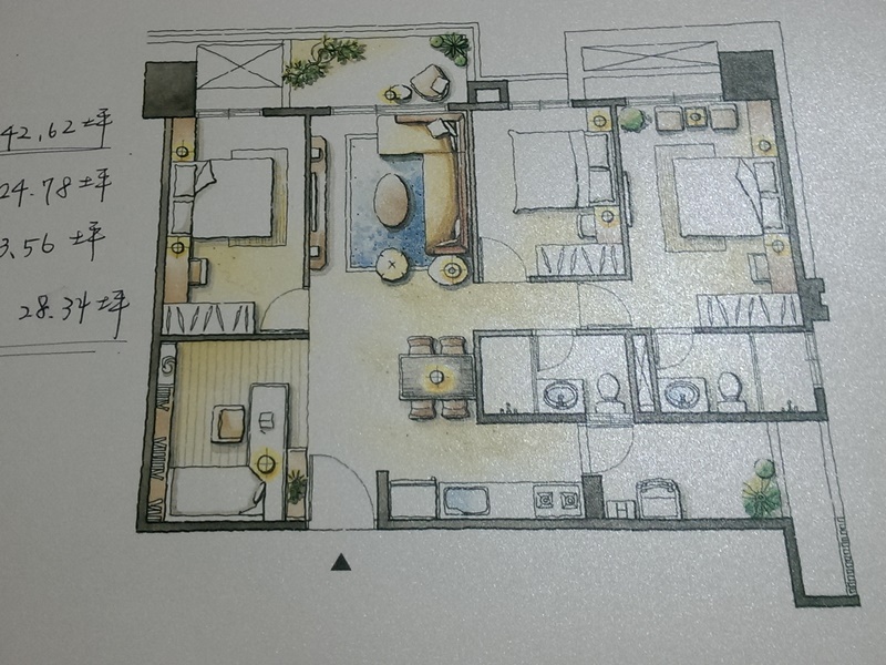 初訪所看的坪數是約43坪,規劃為3+1的產品,這個產品有2個格局(略有一點點不同而已)