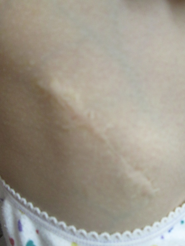 畢竟我神經很大條,不是很在意疤痕這種事。因為我自己體質不太留疤,從小到大運動受傷不少次哩,每次都很嚴重,還有小腿也被機車燙過,但沒有留疤。所以我樂觀的覺得自己的小孩,即使有疤痕應該也不會太嚴重吧(人生…不用在意太過表象的事情)