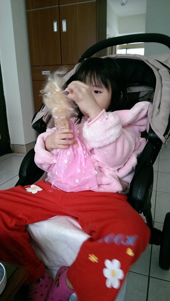 萬事就是因為有這個BUT,那個禮拜跟趙先生又輪流請假在家顧小筑,想說先撐完年假前這周。照顧這幾天,發現可能是怕痛吧!所以不太願意踩地,寧願坐在推車上,但是至少比起包石膏時,可以說方便很多了