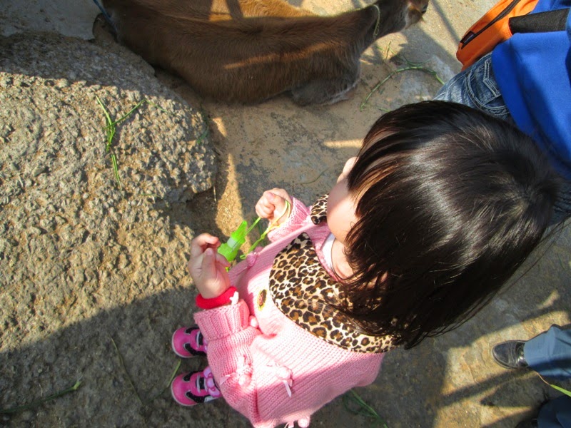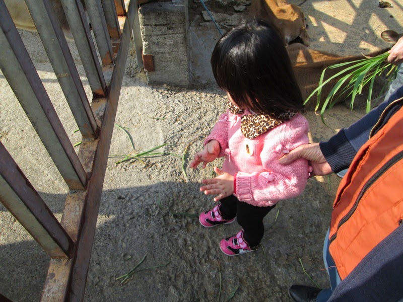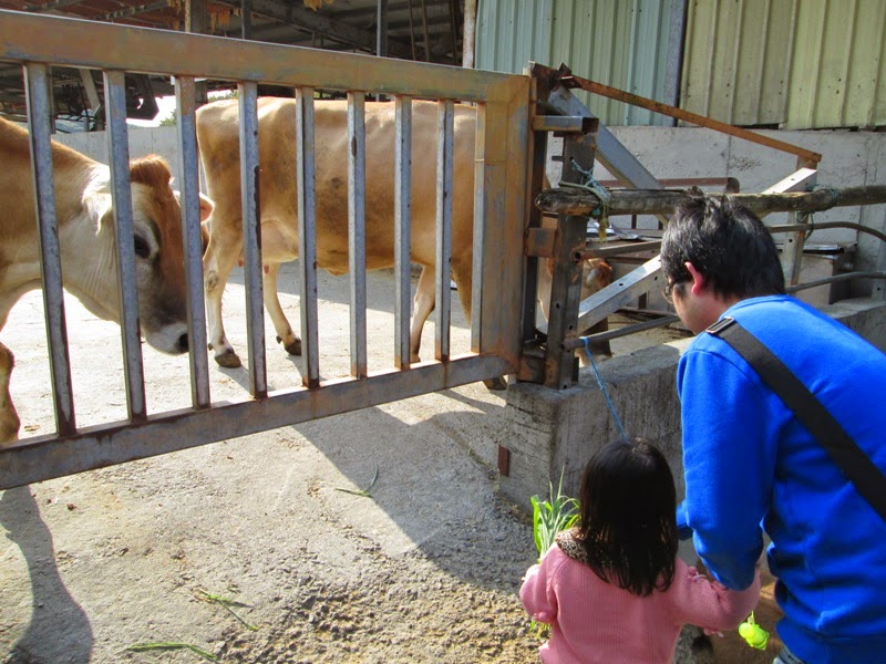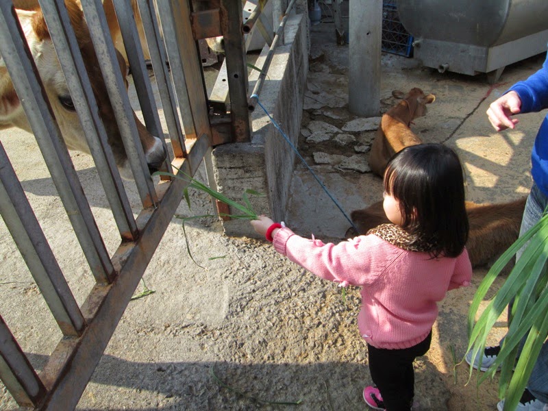 還有賣一把20元的牧草,所以就要讓小孩來試試看餵牛吃草囉!!小筑不是第一次餵牛吃草了!但還是有點害怕呢
